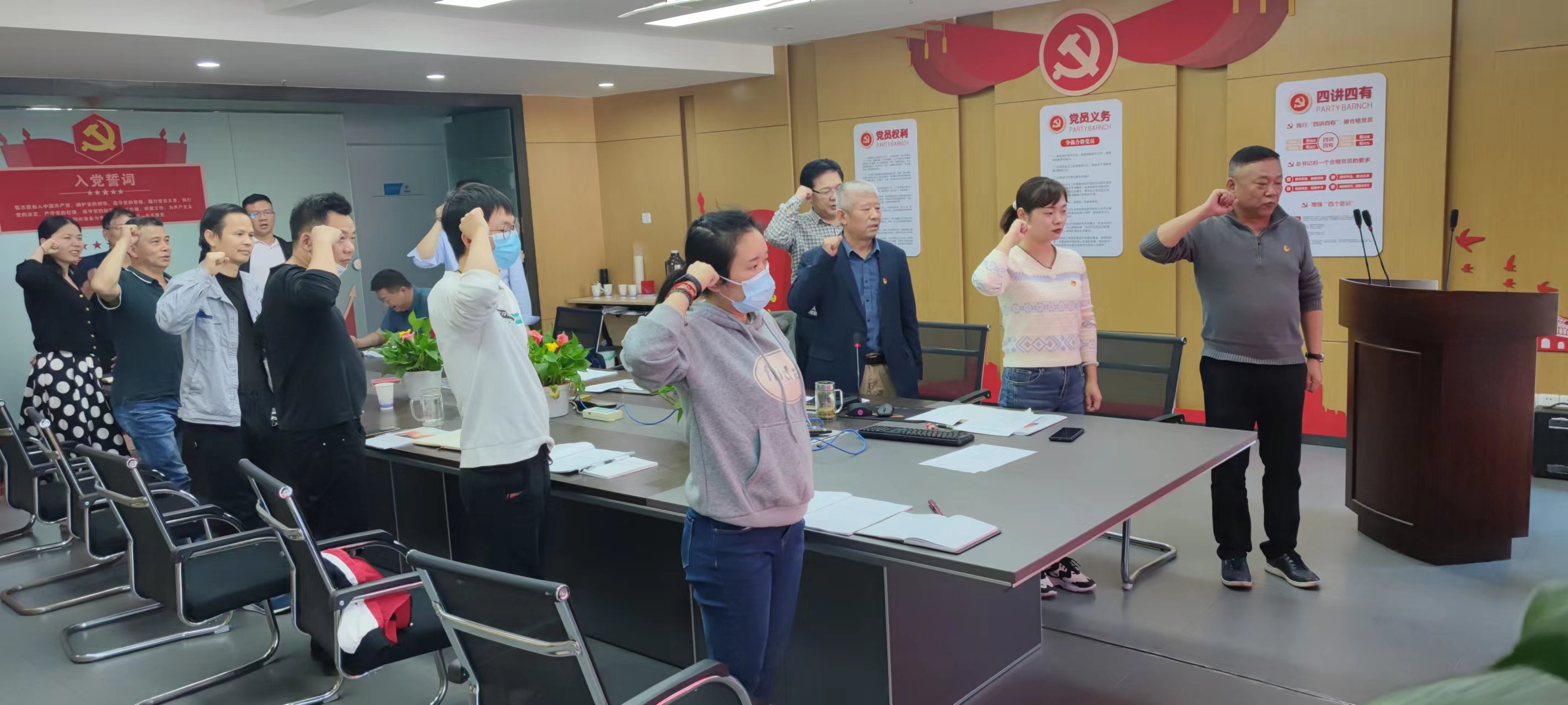 會上,支部書記黃澤光同志帶領(lǐng)大家重溫了入黨誓詞,組織委員李媛同志帶領(lǐng)大家學(xué)習(xí)了本月主題黨課。黨課分為二十大報告15個部分內(nèi)容、9個字解析黨的二十大報告、中國共產(chǎn)黨章程(總綱)、習(xí)近平主持學(xué)習(xí)二十大精神和社會主義核心價值觀五個部分。